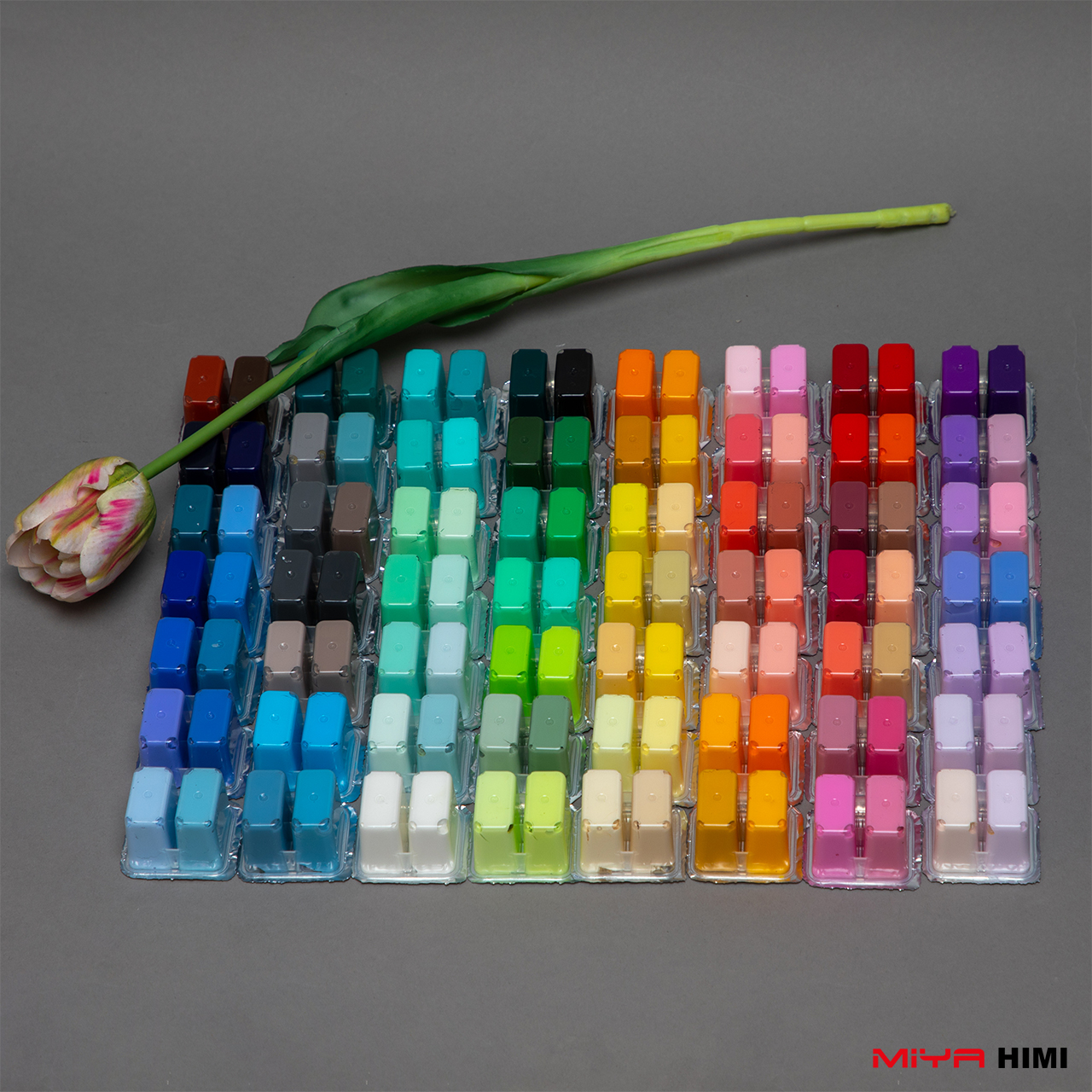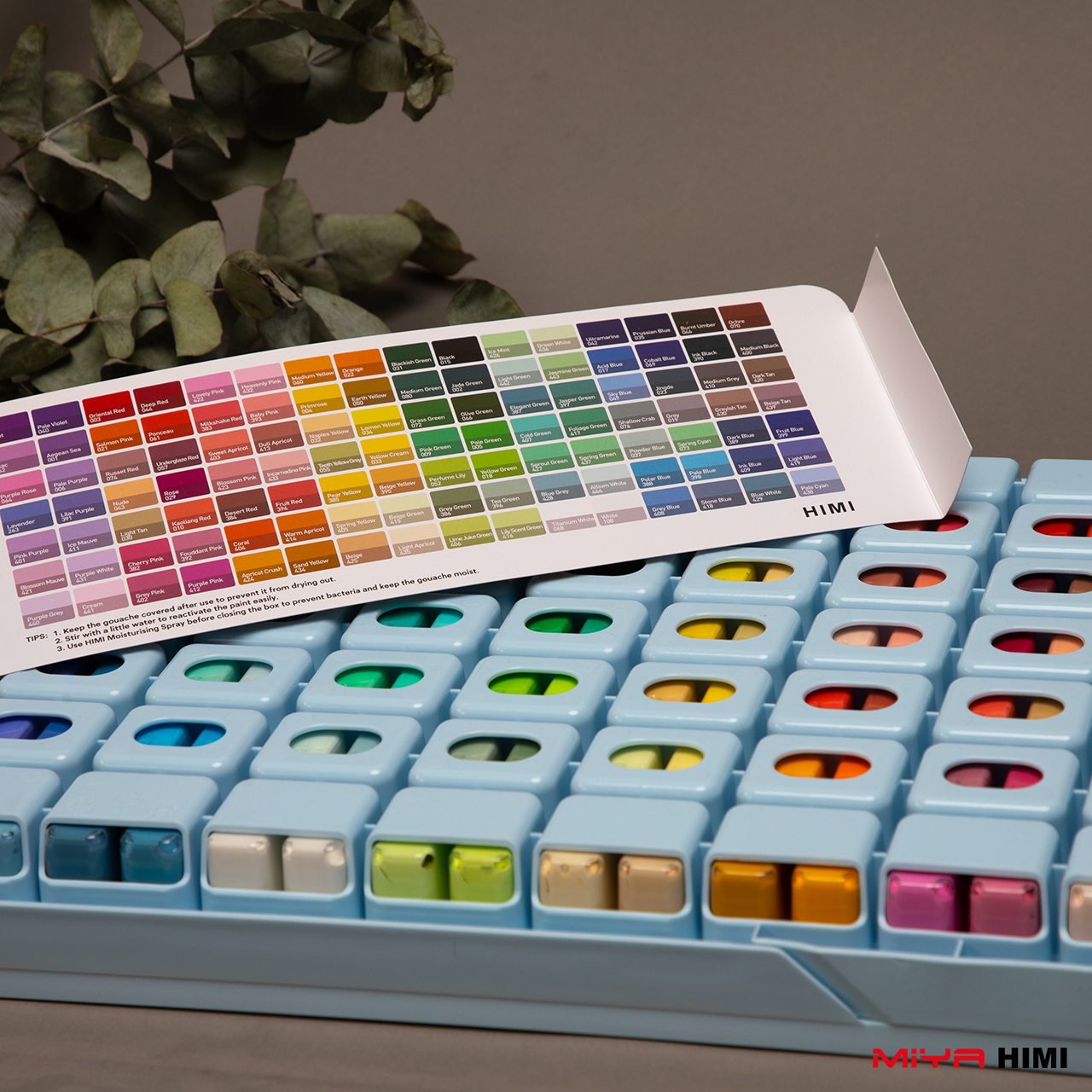 Großes MIYA HIMI Gouache Set mit 112 leuchtenden Farben à je 12g im praktischen Ice-Blue Koffer. Ideal für Illustrationen, Design, Schule und kreative Projekte.
